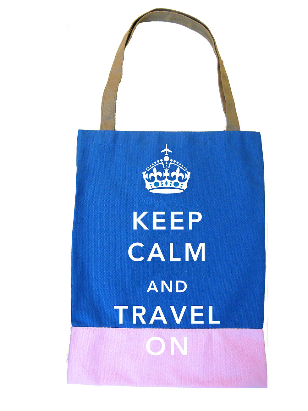 Keep Calm & Travel On Book Tote - Brown - Light blue